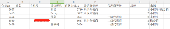 會員導(dǎo)出全部下級增加顯示下級身份(分銷商等級和代理商等級)