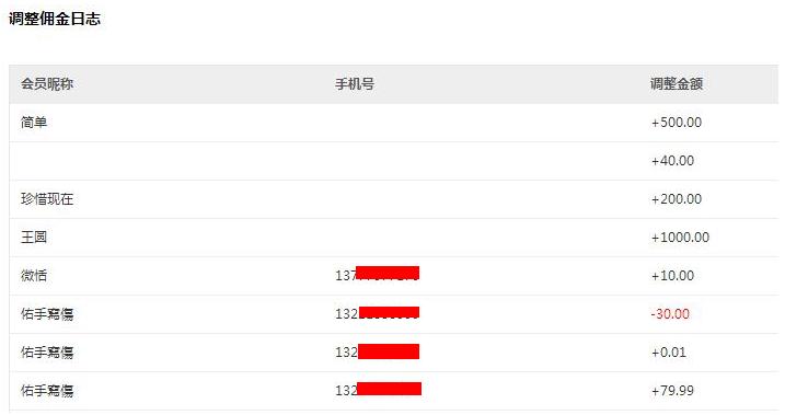 調整傭金日志:顯示分銷商最近的一個傭金變動。