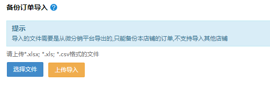 備份訂單導入數(shù)據(jù)只支持微分銷系統(tǒng)的備份數(shù)據(jù),不支持其他店鋪的數(shù)據(jù)導入。請按系統(tǒng)提示的文件格式上傳。如下圖所示: