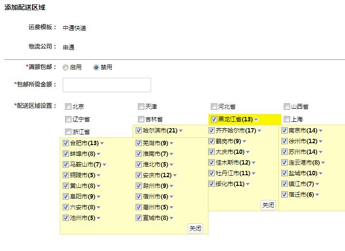 滿額包郵設置可設置區域限制