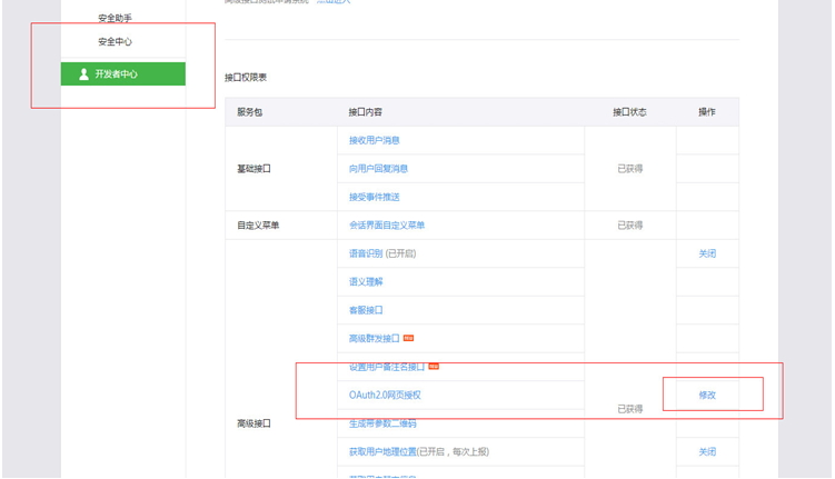 注:微信公眾后臺回調URL設置:開發者中心找到OAuth2.0網頁授權,點擊修改