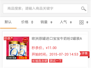 同時(shí),商品列表中對(duì)參與秒殺的商品打上”秒殺“的標(biāo)記。在秒殺商品詳情頁中,如果活動(dòng)還未開始,則顯示活動(dòng)還未開始,并顯示開始倒計(jì)時(shí)。如果此活動(dòng)已開始,則顯示結(jié)束時(shí)的倒計(jì)時(shí)。