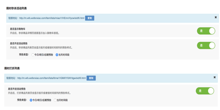 操作步驟:總部后臺(tái)→營銷活動(dòng)→限時(shí)打折、秒殺:1.開啟活動(dòng)預(yù)告按鈕:開啟后,限時(shí)秒殺、打折活動(dòng)列表頁則由預(yù)告的形式顯示;2.選擇預(yù)告類型:今日/明日/后期預(yù)告,當(dāng)天時(shí)間段。