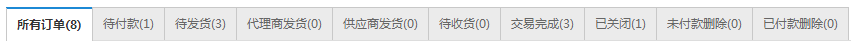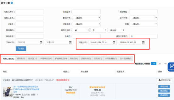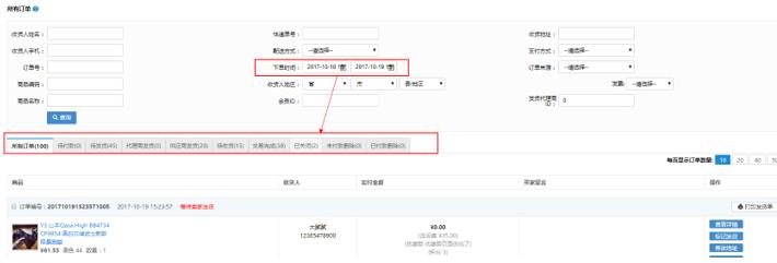 ·點擊選項卡,選擇每頁顯示訂單數量,可以查看相關狀態下的訂單情況。如下圖所示