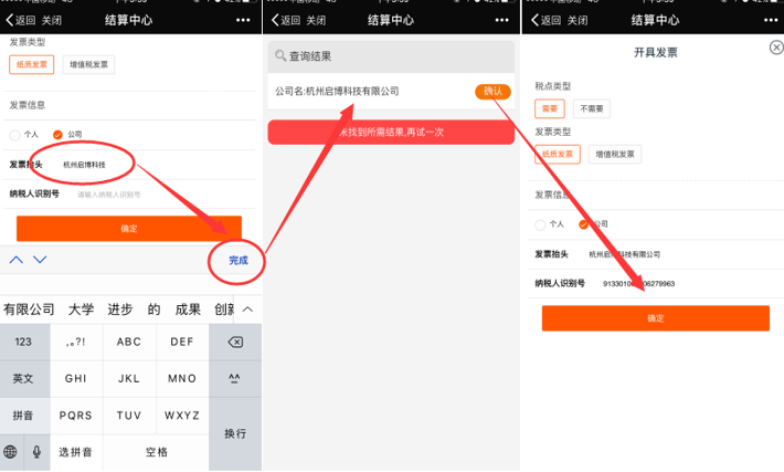 ①紙質發票:選擇公司時,增加填寫“納稅人識別號”,當填寫發票抬頭后,會自動獲取該公司的“納稅人識別號”;