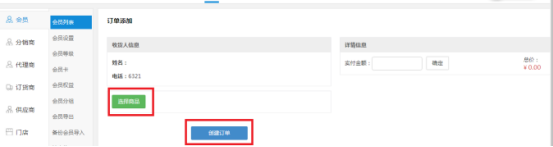 門店后臺→會員→門店會員→創建訂單:操作步驟參考總部后臺創建訂單。