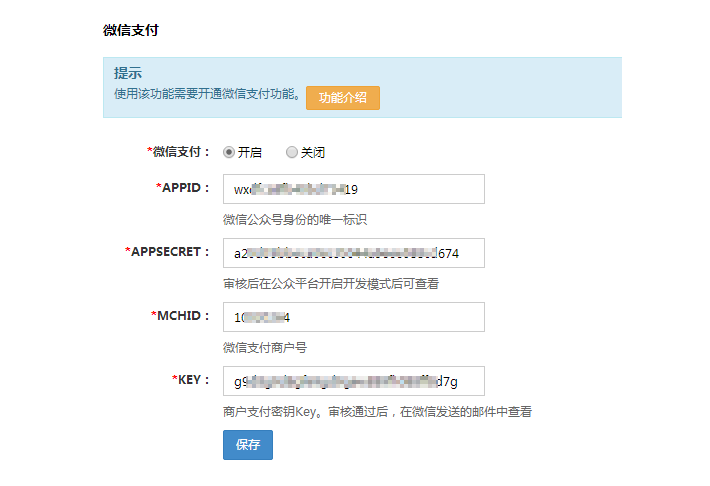 將微信支付開啟,填入微付收款相關信息,即可微信支付