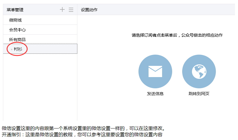二級菜單,可以設置訂閱者點擊菜單后,發送信息或跳轉到網頁(設置鏈接到的頁面地址)