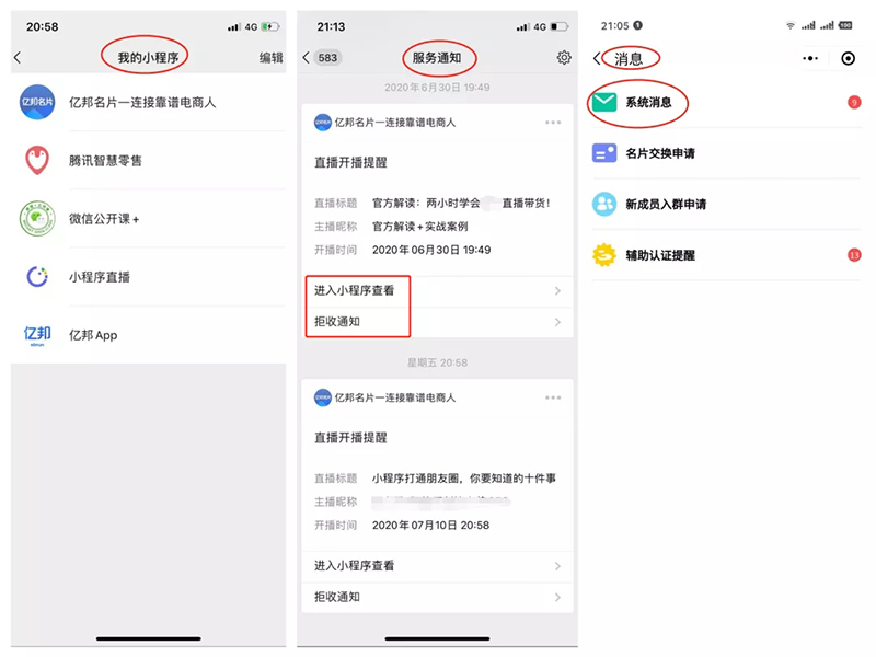 其實,推送消息功能上線前,小程序已有服務通知及小程序內通知功能,只是相對即將展示在微信消息列表中的消息推送,入口較深。