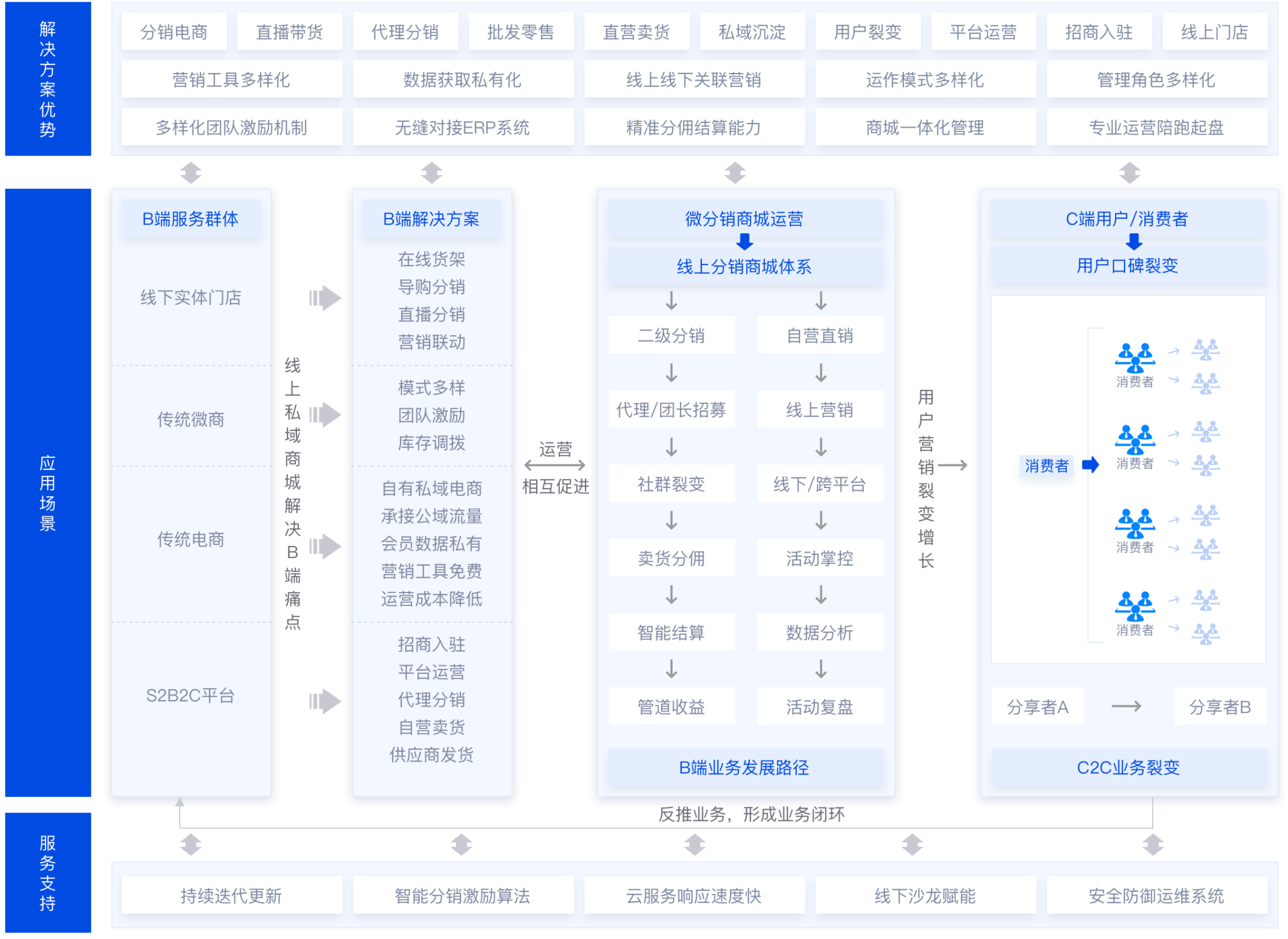 社群團購 + 新零售方案 + 跨境電商分銷 + 視頻號分銷方案 + 私有化企業定制方案,更多專業方案免費獲取……