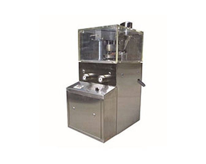 本機是一種雙壓式自動旋轉、連續壓片的機器,將顆粒狀原料壓制成片劑。它主要用于制藥工業的片劑生產,同時適用于化工、食品、電子等工業部門。外圍罩殼為全封閉形式,材料采用不銹鋼,內部臺面用不銹鋼材料,能保持表面光澤與防止交叉污染,符合GM戶要求。裝有透明玻璃的門窗,能清楚觀寥壓片的狀態,側面板熊全部打開,易于內部清理和保養。所有控制器和操作件均布局合理。采用變頻調速裝置進進電氣調速,操作方便,轉動平穩,安全準確。配有過載保護裝置,當壓力過載時,能自動停機。實行機電一體化,采用觸摸鍵及屏幕顯示。傳動系統密閉在機器主體下方油箱中,是安全分隔的獨立部件,亦不會有相互污染,又使傳動付浸潤在油池中,易散熱且耐磨。機器裝有吸塵裝置,能將壓制室內飛揚的粉塵吸收干凈。機器的易損件如上軌道,加料器,料斗,傳動蝸桿,粉量器等與ZP33型老產品具有通用結構、有利于標準化、通用化、系列化。沖模可與ZP19: ZP33、ZP33B. ZP35,.ZP37壓片機通用。